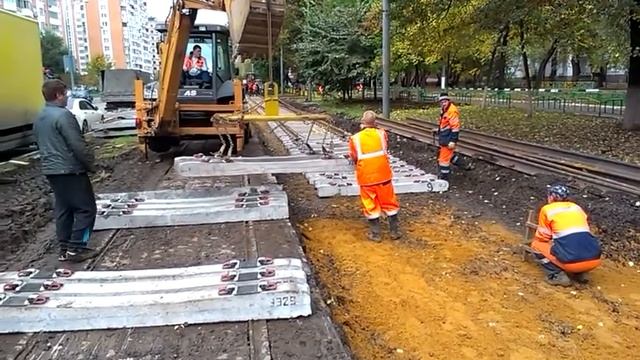 Укладка трамвайной шпалы ШТ-01, рельс Т62 (г.Москва, Сокольники) смотреть онлайн