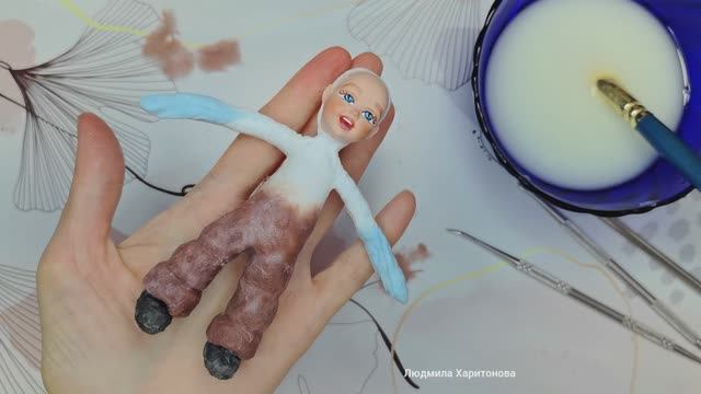 Ведёрко для ватной игрушки. Ложка из ваты. Ватная миниатюра. смотреть онлайн