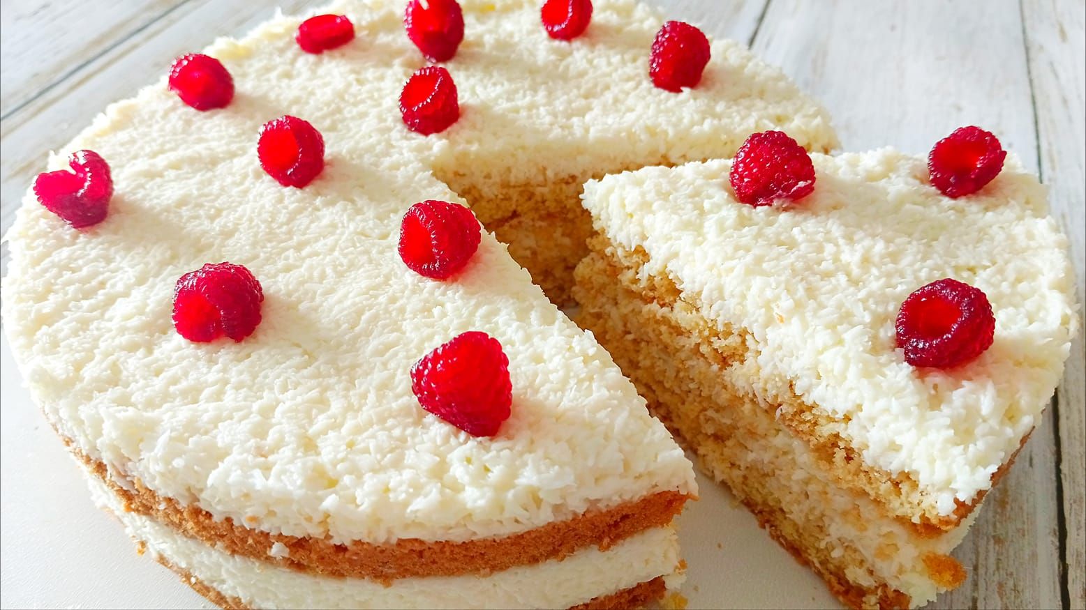 ТОРТ РАФАЭЛЛОВкус кокосового пломбира с клубникойРецепт бисквита и крема!! Торт Raffaello смотреть онлайн