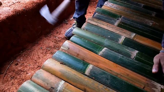 Building warm bushcraft and comfortable dugout | survival shelter, camping in heavy rain , fireplace