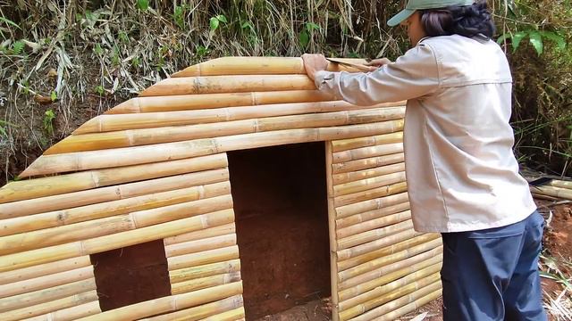 Building warm Bushcraft and comfortable dugout | survival shelter, camping in heavy rain , fireplac смотреть онлайн