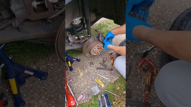 Replacing rear brake disks on a Peugeot 307.