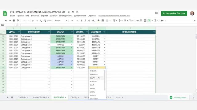 1. Начисление зарплаты сотрудникам