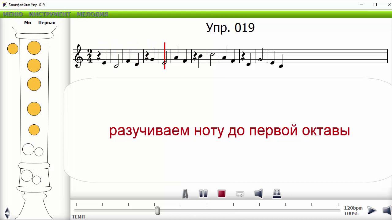 Разучиваем Упражнение 19 Школа игры на блокфлейте. Нота до первой октавы на блокфлейте. Все нотные отверстия закрыты.