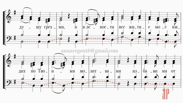 На спасения пути направь меня, о Богородица, / ведь я душу постыдными грехами осквернил / и всю жизнь свою в беспечности растратил. / Но ты своим хода́тайством // избавь меня от всякой нечистоты!