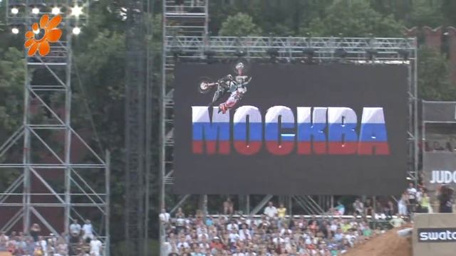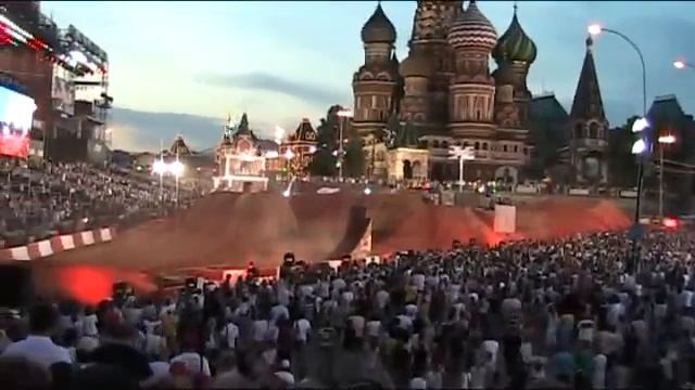Толпа из 40000 болельщиков собралась на Красной площади в Москве, чтобы своими глазами увидеть схватку двенадцати лучших фристайл-мотокросс райдеров в мире.