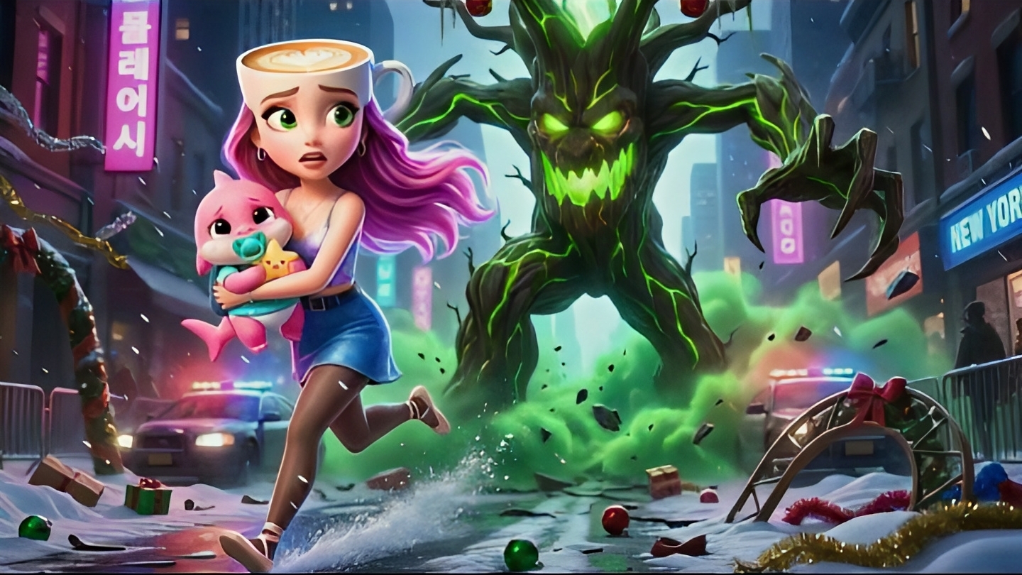 С первого кадра вы окажетесь в эпицентре хаоса — по деревне проносится крокодил-бомбардировщик, а героиня по имени Капучино решает судьбы людей одним взглядом. После трагедии мальчик-чашка остается один, но в решающий момент Капучино спасает его от солдат-крокодилов.