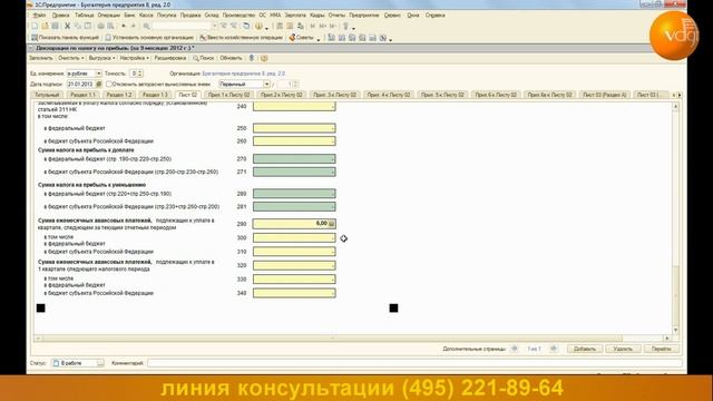 В данном видео вы увидите пример работы с калькулятором по расчету авансовых платежей по налогу на прибыль.