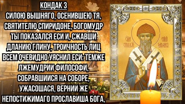 Спиридон родился в конце III века на Кипре в семье простых христиан. С самого детства он пас овец и вел скромный, богоугодный образ жизни. Достигнув возраста зрелости, женился, и супруга родила ему детей. Через несколько лет душа его жены покинула мир, и Спиридон стал еще усерднее служить Господу Богу. Перед его взором всегда был пример Давида, Иакова и Авраама, которые отличались кротостью, простотой и любовью к странникам.