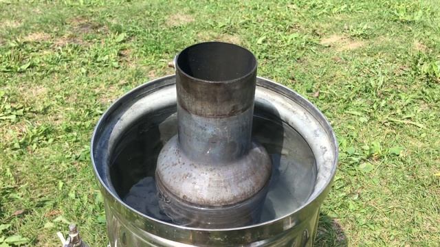 Когда самовар закипит - поставьте конфорку и колпачок, чтобы остановить активное горение.