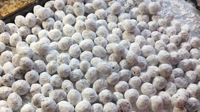 5⃣ Запекайте 5 минут. Пудровая оболочка должна стать твёрдой, а не рассыпчатой.