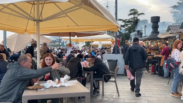 Второй раз к нам в Ялту зашёл корабль Херсонес. На набережной очень много туристов и отдыхающих. Море уже теплое, все купаются. Лето,жара, фрукты, море, солнце пляж.Ялта-город счастья!