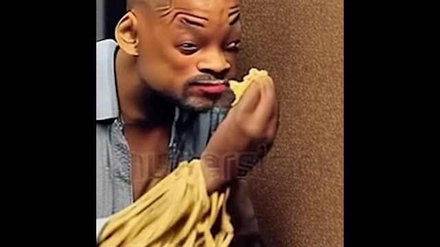 Instead of Will Smith eating Spaghetti, here is Will Smith eating Chicken Wings