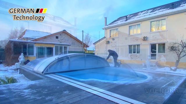 На видео представлен раздвижной павильон для бассейна модель "Prestige" производства завода Voeroka Германия www.Voeroka.de Уличный бассейн эксплуатируется круглогодично благодаря раздвижному павильону для бассейна от ведущего Европейского завода Voeroka Германия. Зимой павильон прекрасно сохраняет тепло внутри конструкции создавая комфортный микроклимат. Летом раздвижной механизм конструкции позволяет без особых усилий сдвигать секции павильона, что позволяет купаться в бассейне под открытым небом. На аккаунте Voeroka в YouTube также представлено видео этого павильона эксплуатация в летнее время где видно как легко сдвигаются секции павильона и открывается вся площадка вокруг бассейна.