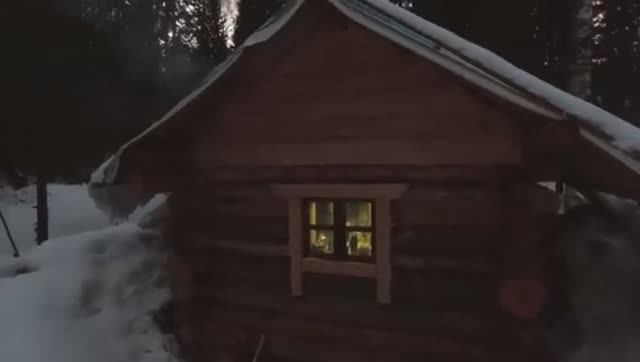 На новый год в тайгу. Вечер в уютной избе. За окном метель, а на столе вкусный ужин. смотреть онлайн