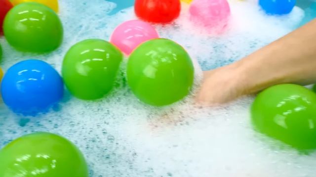 Ам Ням играет в прятки! Он прячется в бассейне с шариками, а найти его помогает вкусный леденец