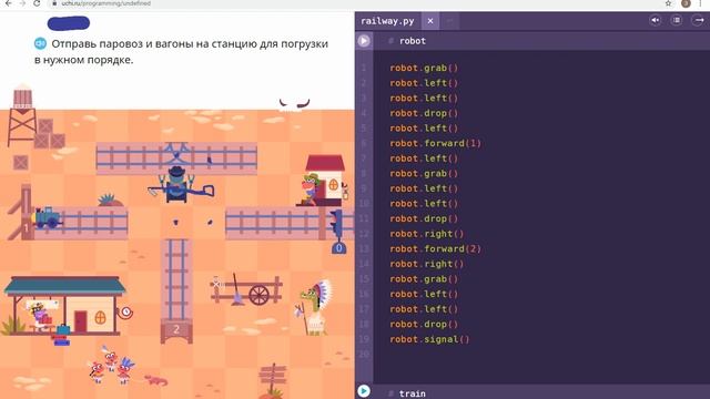 пятый сложный уровень с загадкой - Происки в тупиках - Учи.ру(uchi.ru) - Программирование смотреть онлайн
