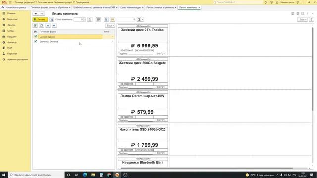 Печать ценников в 1С:Розница смотреть онлайн