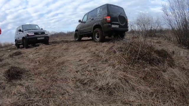 По заказам трудящихся, ролик про 2х патриотов с выезда в болото.. Тест шин в заилином болотце, Уаз Патриот — зима 29", Уаз Патриот — COMFORSER CF3000 — 33". Давление 0,6-0,7.