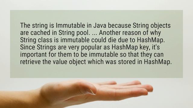 The string is Immutable in Java because String objects are cached in String pool. ... Another reason of why String class is immutable could die due to HashMap. Since Strings are very popular as HashMap key, it’s important for them to be immutable so that they can retrieve the value object which was stored in HashMap.