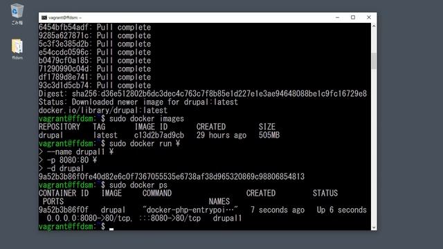 Drupal の Docker 公式イメージ単体で Drupal 9 のローカルサイトを立ち上げる手順を紹介します。Drupal 実習用の仮想マシン環境 ffdsm(ふづむ)を使用しています。
