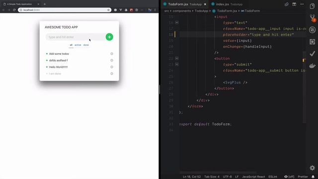 Here we see a simple setup with webpack dev server and how it benefits us.