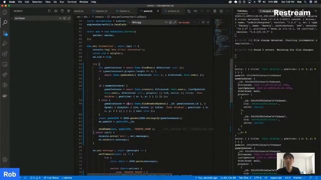 The Code of War game development in Javascript, React (Hooks), NodeJS, MongoDB (Mongoose).