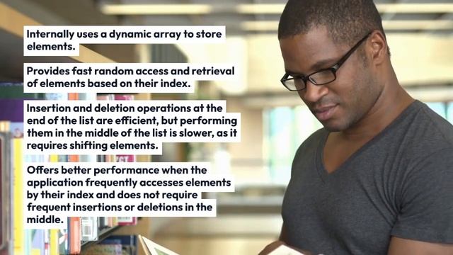 Offers better performance when the application frequently accesses elements by their index and does not require frequent insertions or deletions in the middle.