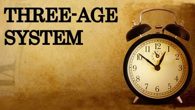 The three-age system is the categorization of history into time periods divisible by three; for example, the Stone Age, Bronze Age, and Iron Age, although it also refers to other tripartite divisions of historic time periods. In history, archaeology and physical anthropology, the three-age system is a methodological concept adopted during the 19th century by which artifacts and events of late prehistory and early history could be ordered into a recognizable chronology. It was initially developed by C. J. Thomsen, director of the Royal Museum of Nordic Antiquities, Copenhagen as a means to classify the museum’s collections according to whether the artifacts were made of stone, bronze, or iron.