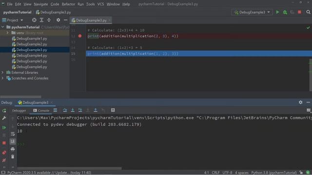 Learn to use the debug feature in PyCharm in 15 Minutes.