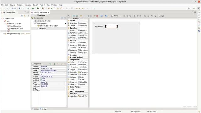 Action Restriction : Type "JPanel" is not API or
