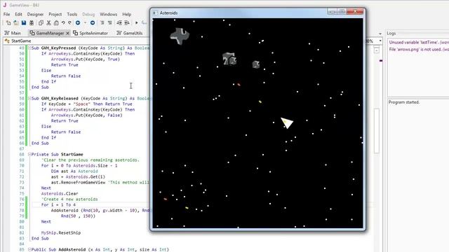 Asteroids example developed with GameView classes.