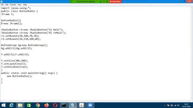 Working of Radio Button Program with output.