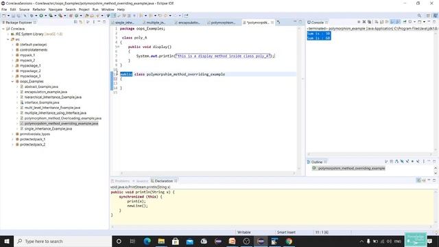 System.out.println("this is a display method inside class polymorpshim_method_overriding_example");