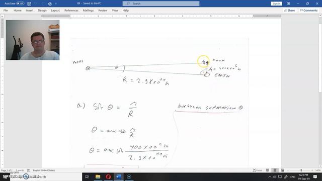 The Earth and Moon are separated by about 400x106 m. suppose Mars is 2.9 1011 m from Earth and forms a right triangle with Earth and the Moon. Assume a pupil diameter of 6 mm and l= 550 nm. Determine the following.