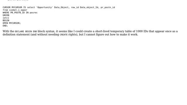 Databases: use a string array without CREATE privileges
