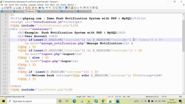 #pushnotificationsystemph #phpproject #freephpproject #phptutorialinhindi