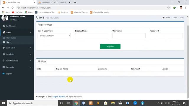 display all users in a table,