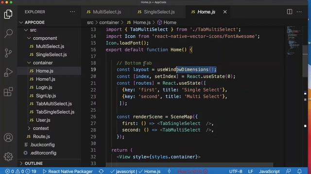 React native flat list single multi select tab view
