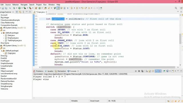Craps Game in Java - Enumeration Example