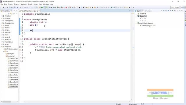 This video helps you to learn use of static keyword in java. You can learn how static keyword works with simple example.