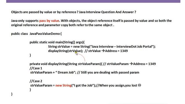 Click here - https://www.youtube.com/channel/UCd0U_xlQxdZynq09knDszXA?sub_confirmation=1 to get notifications. Objects are passed by value or by reference Java Interview Question And Answer