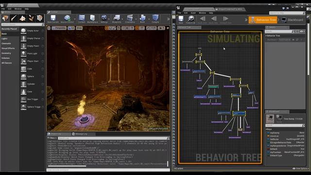 Really enjoy a.i. behavior studies in the efforts of bug crunching various choices and animation state machine issues. In the process of developing the dragon fight in the vaults, have been working on melee attacks and ranged attacks, the latter of which are ground and air based.