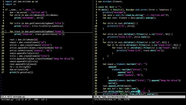 short overview over some XML parsing libraries available in Python and Rust