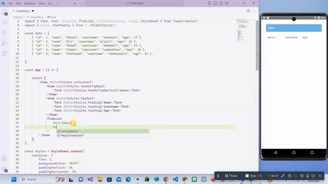 Creating a Basic Table: Get hands-on experience as we create a simple table structure using FlatList. We'll cover data structure, rendering, and styling.