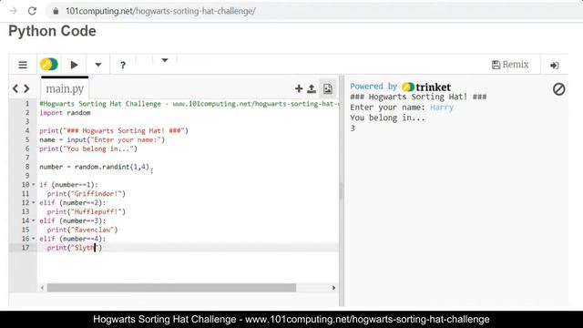 View blog page for this video: https://www.101computing.net/hogwarts-sorting-hat-challenge/