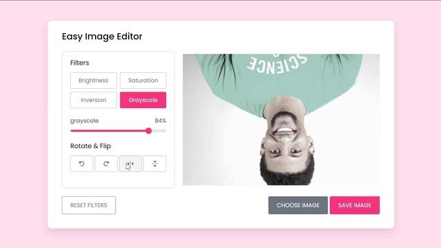 This is a React application for editing images. The user can upload an image and apply various filters and transformations like brightness, saturation, inversion, grayscale, rotation, and flipping. The edited image can then be saved to the user's device.