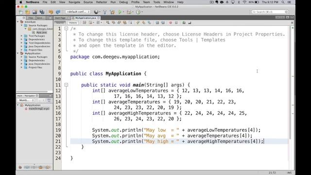 Imagine someone has asked you to create an application that reports that average high, median, and low temperature for your city. You could create three variables for each month. This would give you 36 variables to keep track of. Thats the three temperatures times twelve months. Determining the average low temperature for April would mean you'd need to have special code to match the selected month with the three variables for that month. That sounds like alot of work. Luckily there's a better way that I want to show you. Java has a data
