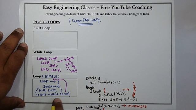 In this video you can learn about the PL-SQL Loops - For Loop, While Loop, Simple PL-SQL Loop with Examples. This topic is very important for College University Semester Exams and Other Competitive exams like GATE, NTA NET, NIELIT, DSSSB tgt/ pgt computer science, KVS CSE, PSUs etc.