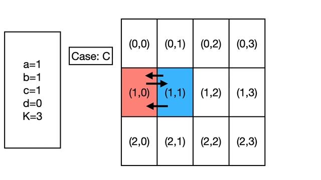 There is a grid of size 10^5 x 10^5 , covered completely in railway tracks. Tom is riding in a train, currently in cell (a,b), and Jerry is tied up in a different cell (c,d), unable to move. The train has no breaks. It shall move exactly K steps, and then its fuel will run out and it shall stop. In one step, the train must move to one of its neighboring cells, sharing a side. Tom can’t move without the train, as the grid is covered in tracks. Can Tom reach Jerry’s cell after exactly K steps?